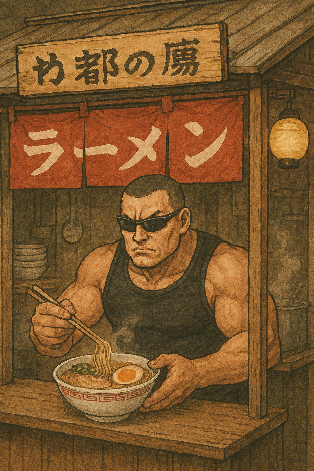 ふと路地を見ると汚い店が両側に並び、その多くがスナックの類いである。昼すぎであるからほとんどの店が火を落とし、何となく薄暗い気配を漂わせている。サンダルを引っかけた異常に痩せた売春婦風の女が急ぎ足で私の横を通り過ぎる。鼻をくすぐる独特の香りは大麻だろうか。しばらく歩くと大きく「ラーメン」と書かれた赤いのぼりの店がある。外から見る限りラーメン屋にはとても見えないが、空腹ゆえに書かれている内容にうそはないだろうと勝手に思い込む。しかし、店の外にあるはずのサンプルがなく、値段表も見当たらない。変だというカンが働いているが、それより何か食いたいという感情が勝ち、思い切って扉を横に引いた。