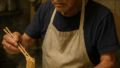 仕方なく「醤油ラーメン」注文し、しばらく待つとすぐに出てきたが、普通のラーメンで、特に他と変わる点はない。駅で食えば300円くらいの代物か。店内はBGMもなく、客は誰もが萎縮したようにうなだれ、ラーメンをすすっている。私も同じようにすするが旨いものではない。その後次々と客が来るが、皆同じように戻ろうとするところをウェイターの大男に捕まり、カウンターに押し戻されている。彼らはこのための要員であった。結局金を払い、店を早々にでた。扉を閉めてから店の位置を改めて確認した。間違って2度と来ないためである。